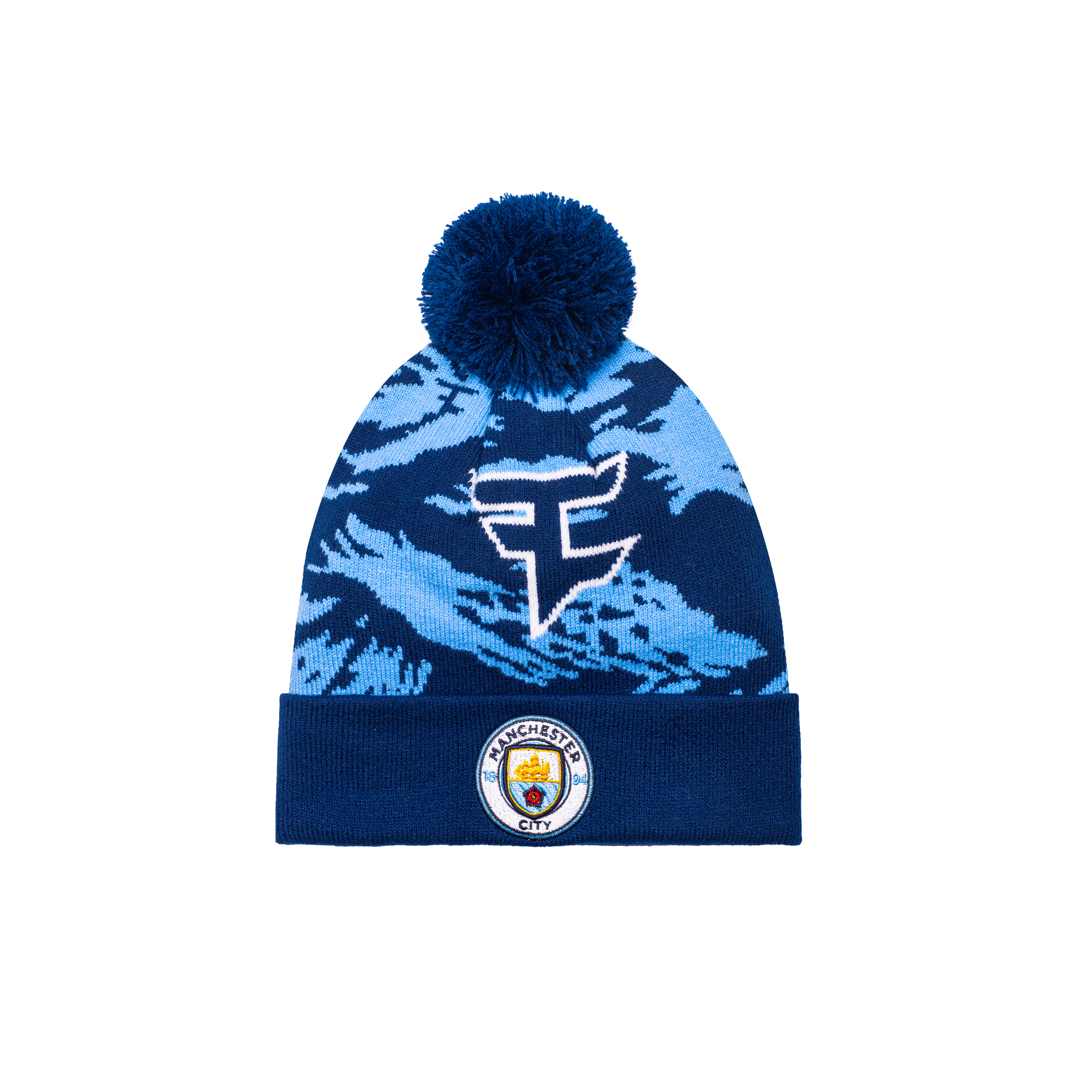 The Faze Clan beanie features the Faze Clan logo knit into the front of the hat in blue. On the cuff, you'll find the Manchester City logo embroidered in full color to better display your team. As the acrylic yarn is mixed in with a camo blue color, the beanie enables you to wear it with any outfit!