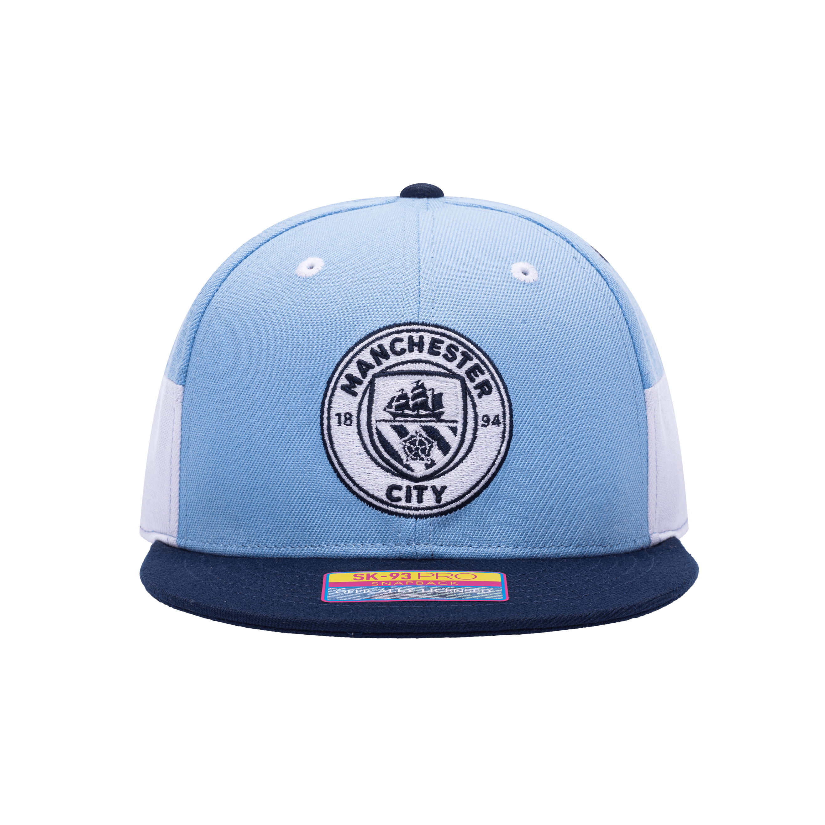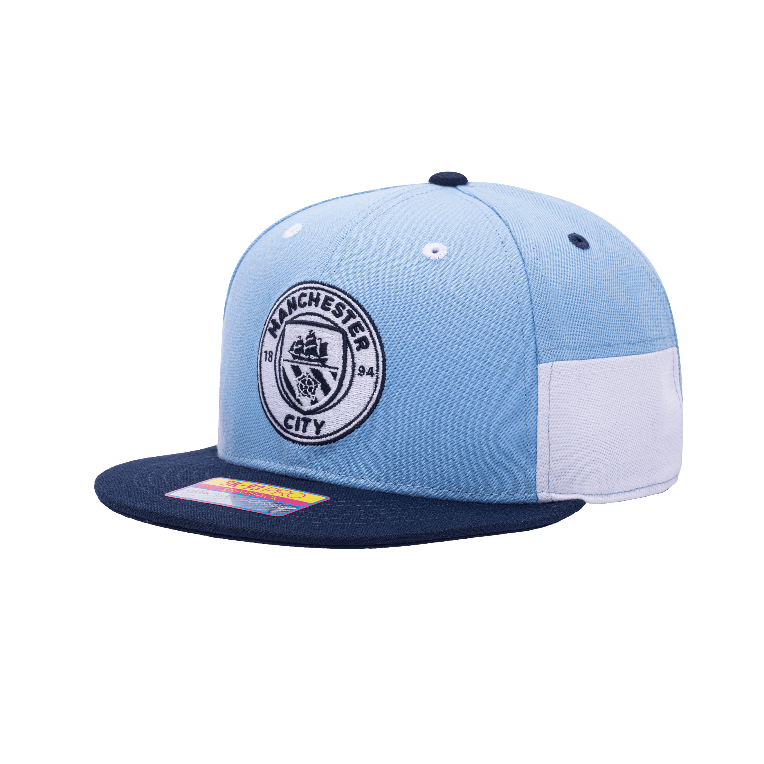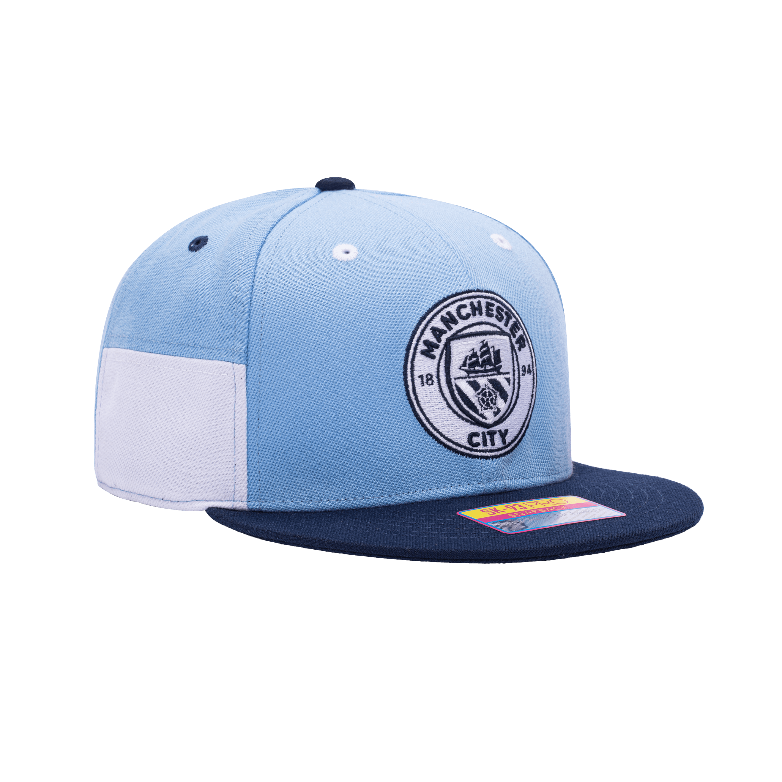 - Description- Based out of Manchester, England, show your support for your favorite Premier League club with the official licensed Manchester City Truitt Snapback! This stylish, colour blocked hat was inspired by modern art. It features a convenient snapback closure, high structured crown, and flat peak brim. This hat is unisex - it can be worn by both men and women!